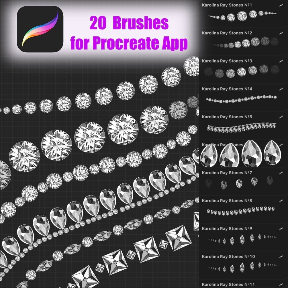 Набор кистей в виде страз для программы Procreate.