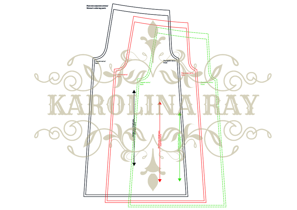 Цифровые лекала женских широких штанов (для тянущихся тканей) для печати на домашнем принтере на бумаге формата А4