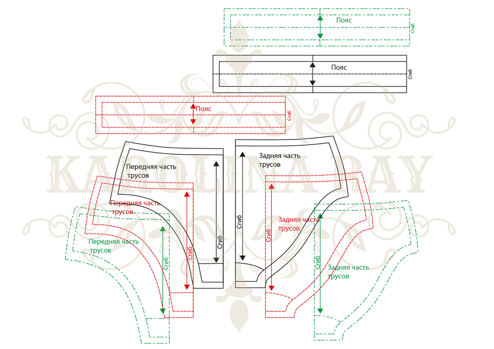 Цифровые лекала трусиков для печати на домашнем принтере на бумаге формата А4