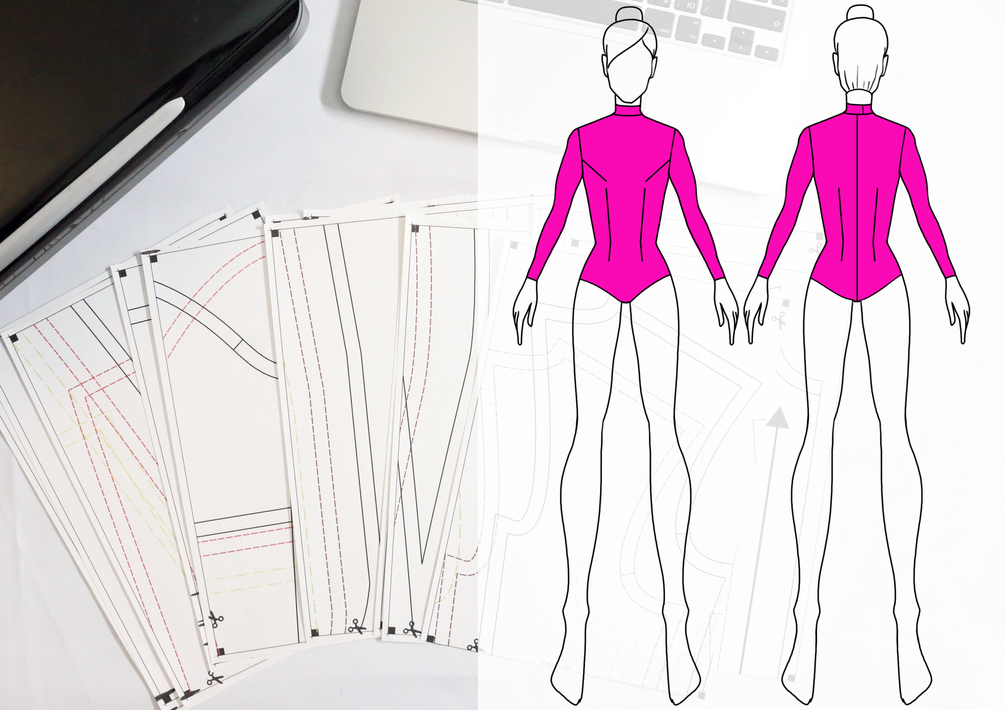 Цифровые лекала женского боди для печати на домашнем принтере на бумаге формата А4