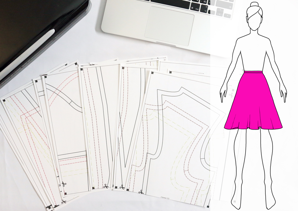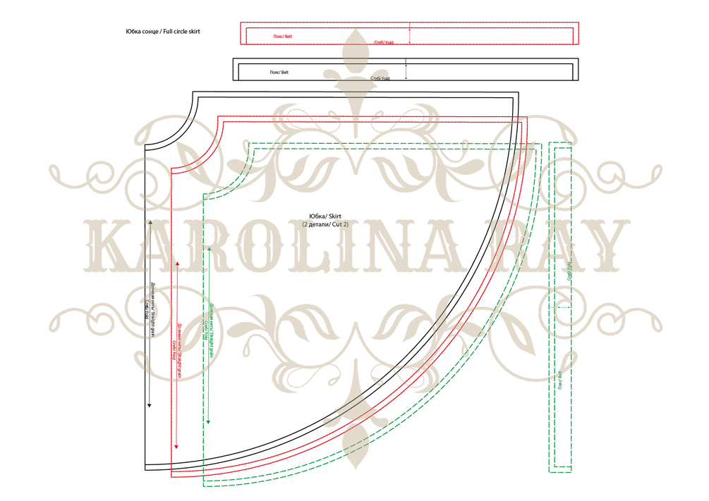 Цифровые лекала юбки солнце (для тянущихся тканей) для печати на домашнем принтере на бумаге формата А4