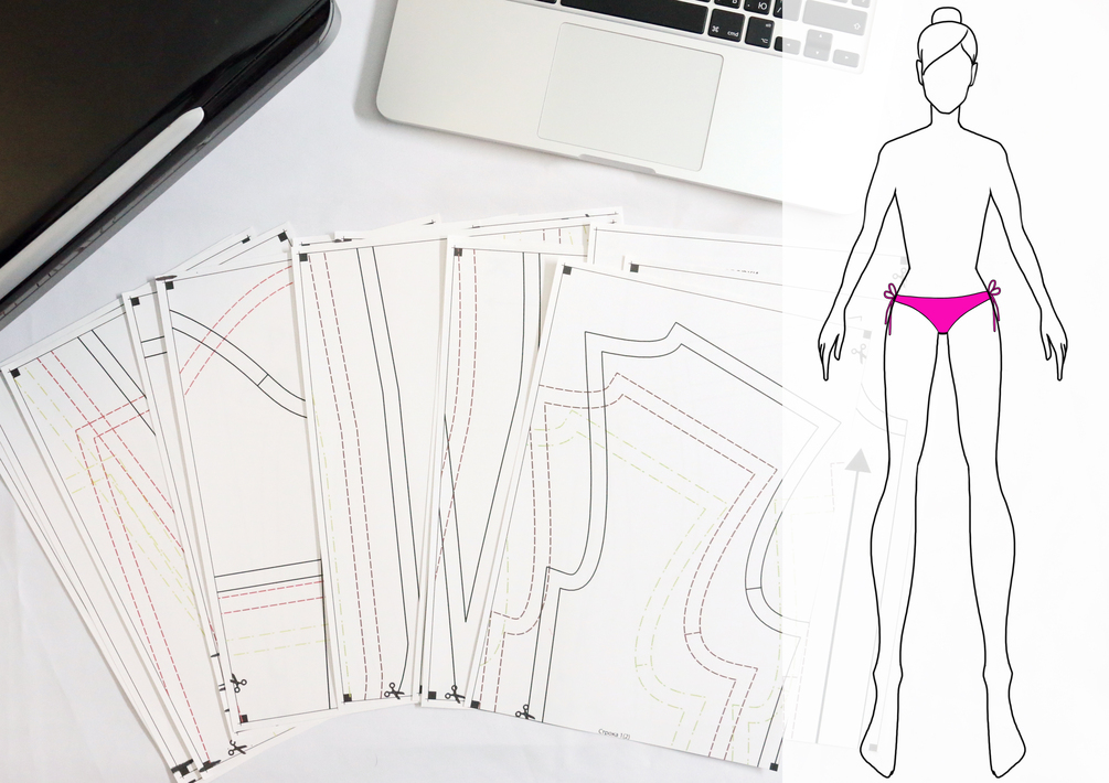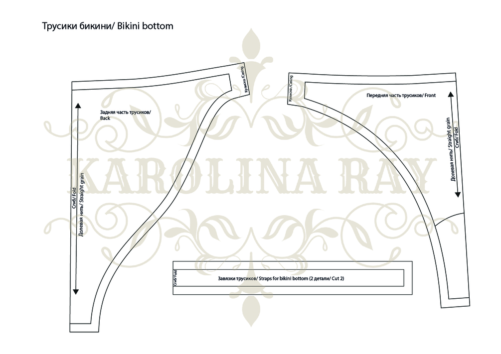 Цифровые лекала трусиков бикини для печати на домашнем принтере на бумаге формата А4